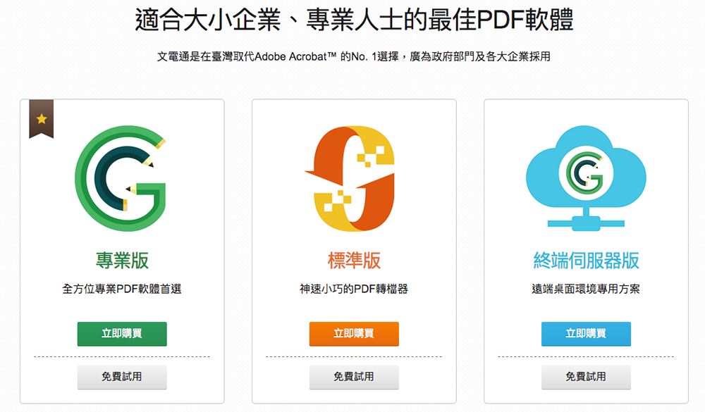 以前我多半會用 Adobe Acrobat 系列產品來解決這類問題,但我覺得恐怖的是購買費用比較高而且目前開始強迫我們用「訂閱更新」的方式來買軟體,每年都要繳「贖款」啊!還好文電通同時提供永久授權和訂閱版兩個方式可以選擇,而且價格只要三分之一就搞定了,我覺得對公司或企業來說絕對划算啊!(私心建議學校或研究室請內建好嗎?)