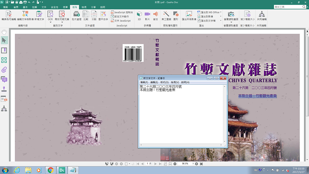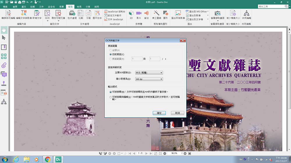 像這個以前的雜誌掃描檔案,透過 Gaaiho Doc 的「進階」選單裡的「OCR」功能,也就是「光學字元識別」,就能直接幫我們把該頁面的文字或整份文件的文字全部擷取出來。