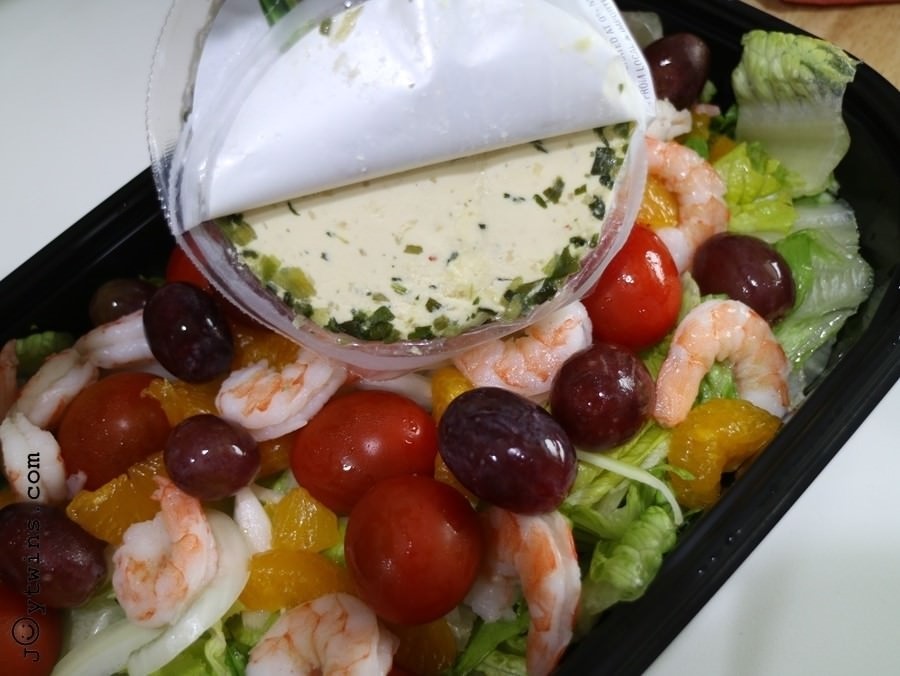 就是一道新鮮、風味獨具又回味無窮的鮮蝦水果佐韮蒜乾酪沙拉~在外頭野餐也能吃得豪華又國際水準!