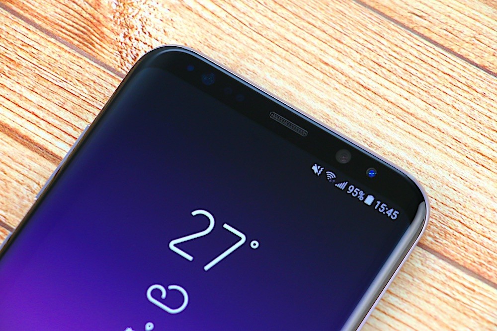 高屏佔比的特色,也使得三星 Galaxy S8+ 螢幕上方的邊框寬度明顯變窄許多。而首次應用在 Galaxy S8+ 上的虹膜辨識鏡頭,以及具備快速自動對焦與人臉辨識功能,甚至還內建各種有趣自拍特效的 800 萬畫素、f/1.7 大光圈自拍鏡頭,則都是設置在上方的黑色邊框中。