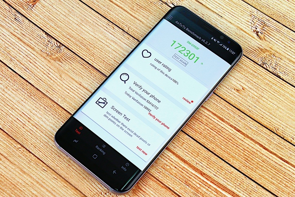 搭載 10 奈米製程 Exynos 8895 處理器,以及內建 4GB RAM/64GB ROM 的三星 Galaxy S8+ ,整體效能表現非常出色。經安兔兔跑分軟體實測,Galaxy S8+ 跑出了高達 17 萬分左右的驚人成績,不管是要將 Galaxy S8+ 當作隨身工作夥伴,還是將手機當作隨身劇院觀賞影片或玩大型手遊,強大的效能表現,將提供用戶非常出色、流暢的體驗。
