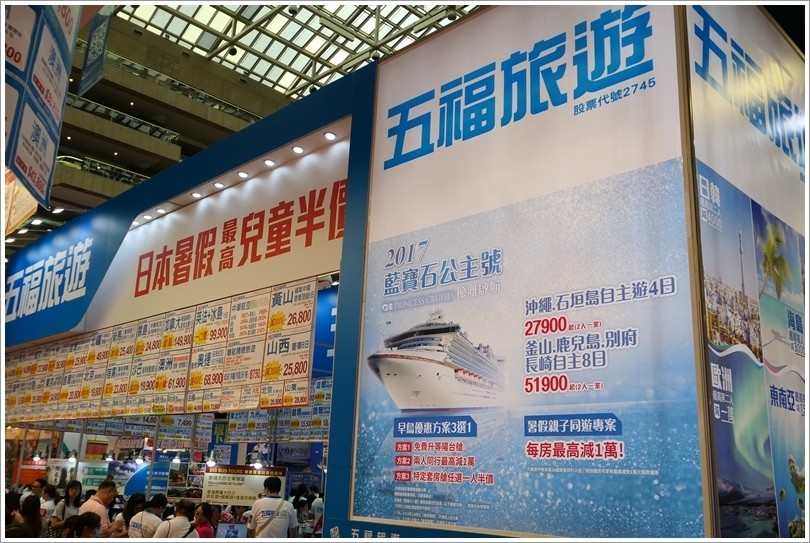 夏季最大的國際旅展─2017台北國際觀光博覽會開跑啦!於5/5(五)~5/8(ㄧ)於台北世貿一館盛大展出,大口在開幕第一天早上就趕到現場替大家做即時的連線報導,包括第一手的最新優惠資訊、懶人包(國內旅遊、國外旅遊、泡湯)、攻略地圖與餐券優惠,一次通通趕快報給大家知道!不過重點還是大家最喜歡去的日本,剛好最近日幣貶值,創一年半以來新低,一度還貶到0.269元,用5萬新台幣就能換到18萬5874元日幣,大口也趕快衝去換了一堆;以上次大口換到的0.282來說就差了好多,用5萬新台幣只能換到17萬7305元,足足差了8569日幣,新台幣就差了2303元,東京迪士尼都可以一人免費入場還可外加多吃一碗拉麵,所以現在去日本正划算~想要知道現場有什麼好康與優惠,趕快跟著大口繼續看下去就知道啦!