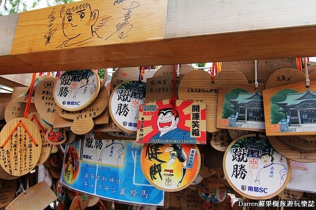 足球小將的繪馬是祈求運動運身體健康,兩津繪馬是以開運笑福為主