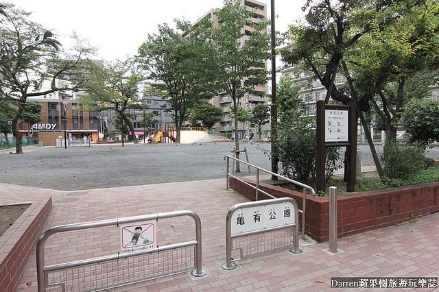 接著我來到龜有公園,這裡有兩個銅像,小公園裡頭也有遊樂設施,帶小朋有可以在這裡玩一下
