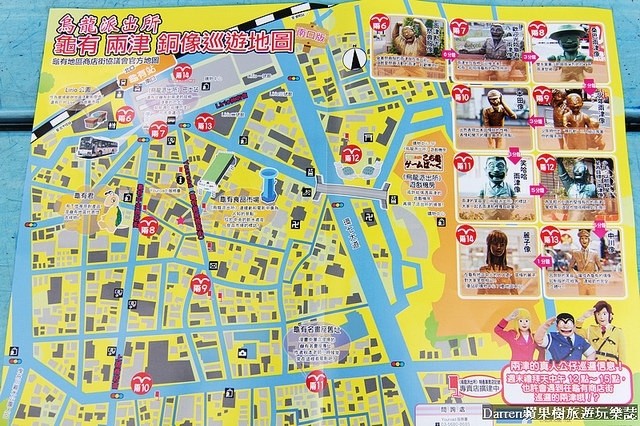 銅像下方也有地圖標示,不過應該是舊的還少了幾個,還是看地圖比較準囉