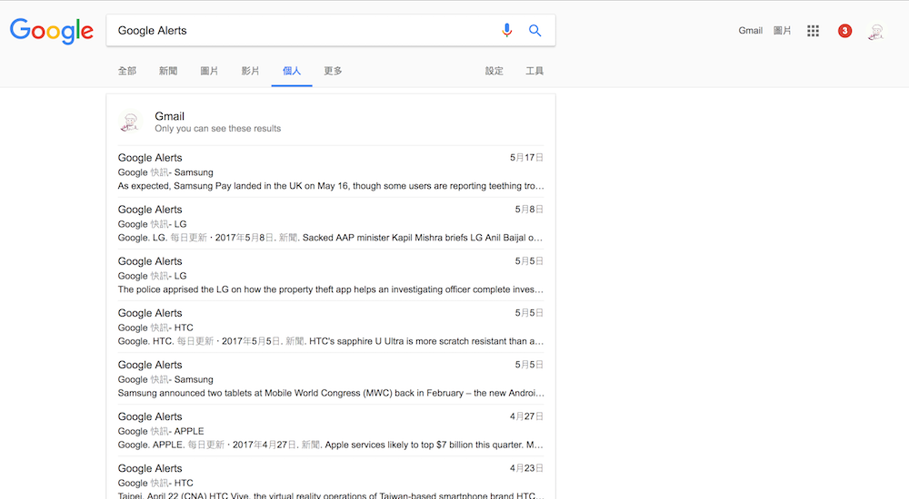 依照目前的資訊來看,Google 的搜尋「個人」功能,除了可以在電腦上使用之外,手機也可以使用這個功能,不過,實際操作幾次後發現,目前「個人」搜尋功能只搜尋得到 Gmail 與 Google Photos 的資料,其他 Google 服務,像是 Google 日曆、Google Drive 雲端硬碟…等資料則是沒有搜尋出來,推測此功能可能還在整合當中,未來或許就能整合的比較完整。