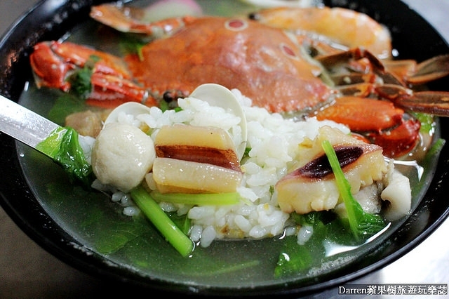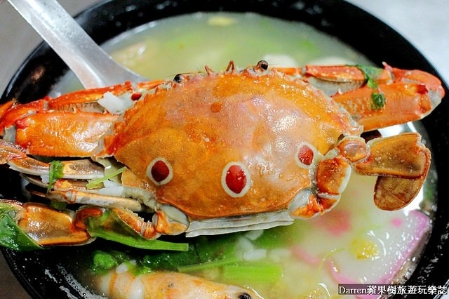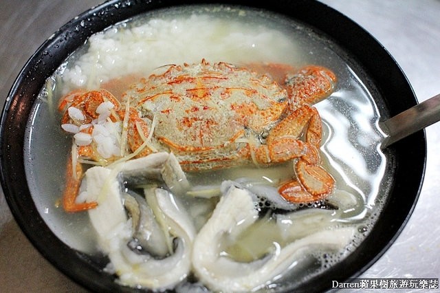 海產粥60元免費加送一隻螃蟹,他們家的螃蟹就三點蟹跟牛角蟹