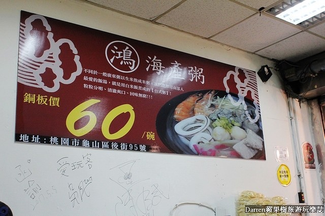 鴻海產粥就在龜山后街的永豐精緻烘焙坊旁邊的小巷子,開店時間到很好找因為就有一堆人在排隊