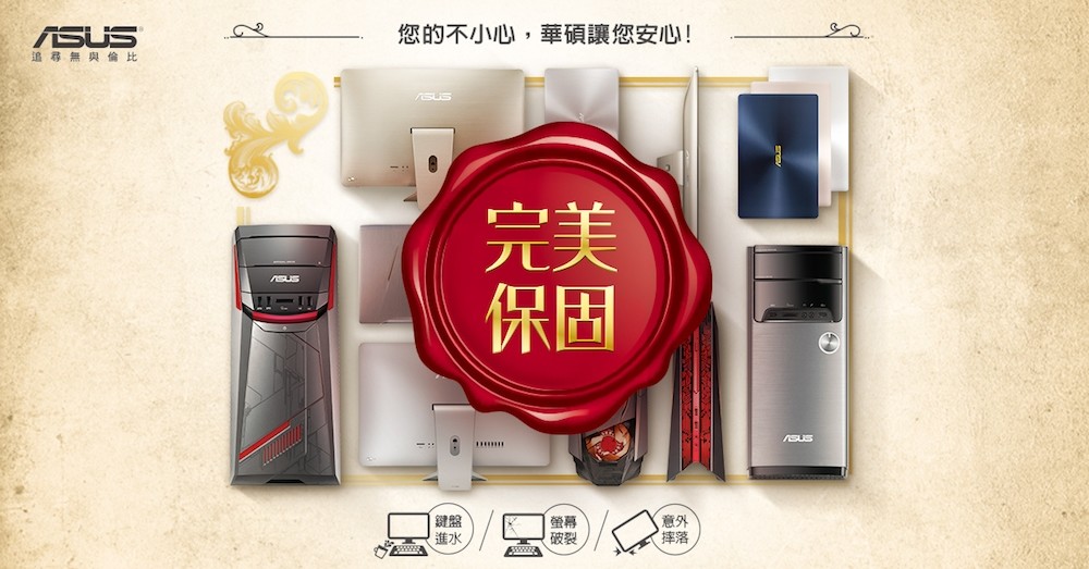 針對 ASUS ZenBook 系列筆記型電腦、ROG / ASUS FX 系列電競筆電、ASUS Zen AiO / Vivo AiO 系列 All-in-One 電腦,以及 ASUS G / M / K 系列桌上型電腦所推出的「首年首次完美保固」服務目前已正式開跑,即日起購買上述系列電腦產品的消費者,請務必到「首年首次完美保固」活動網頁註冊會員,替自己的電腦多加一份保障。