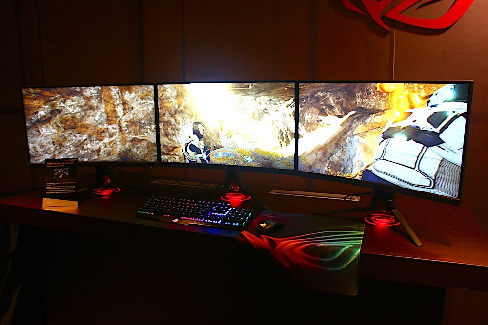除了發表更多具備 ASUS Aura Sync 同步燈效技術的周邊產品外,現場也有展出當所有具備 ASUS Aura Sync 同步燈效技術的電競周邊產品結合後所呈現的氣氛效果。此外,ASUS 打算在今年第三季時對外開放此功能,或許未來每家高級網咖、各大電競館、甚至是玩家家中都能輕鬆營造出非常具有電競氣息的氣氛效果。