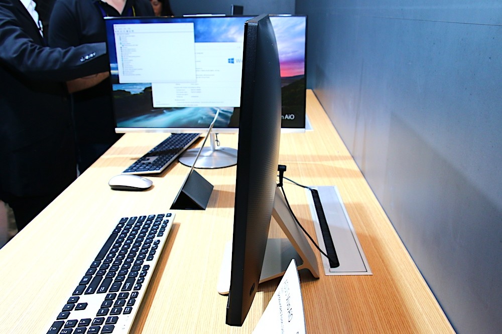 除了 Zen AiO ,展場中亦有展出 Vivo AiO 電腦。Vivo AiO 搭載的是 24 吋 Full HD 多點觸控螢幕,也因為窄邊框設計的關係,使得喇叭設置在機身的下方位置。硬體規格部分 Vivo AiO 採用最新第七代 Intel Core i5 處理器,以及 NVIDIA GeForce 930MX 獨立顯示卡,不管是工作還是娛樂使用都非常適合。
