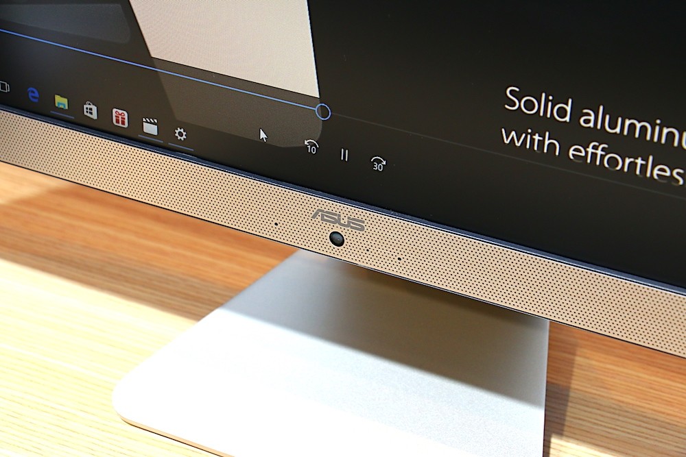由於 Vivo AiO 同樣採用極窄邊框設計,因此 ASUS 將視訊鏡頭、喇叭與一些偵測元件設置在螢幕下方。