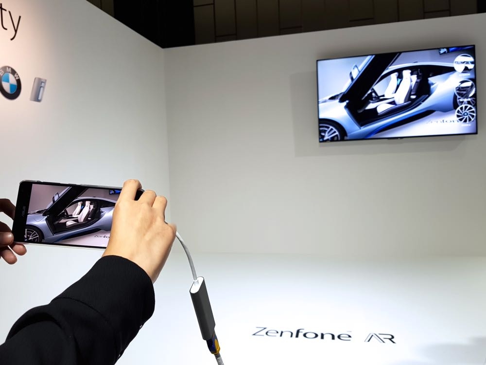 原來 ASUS 特地帶來與其合作的 BMW i3 車款為大家進行示範,透過 AR 虛擬實境的效果,讓現場並不需要實際把車帶來,也能細細觀賞其中的細節。