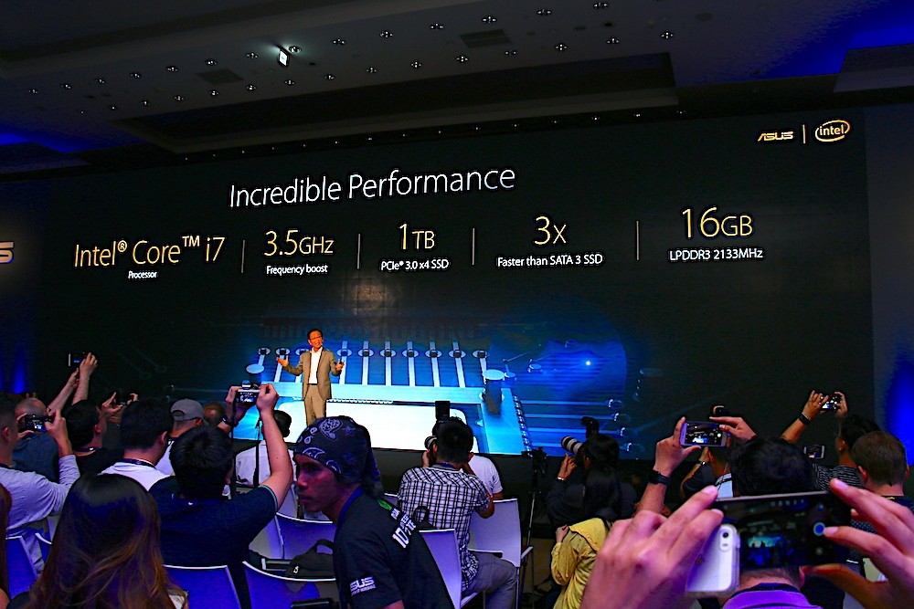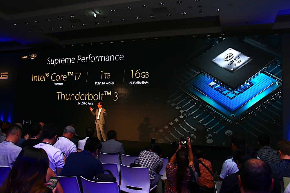 硬體規格方面,ASUS ZenBook 3 Deluxe 搭載 最新第七代 Intel Core i7 處理器 (U 系列)、最高 16GB LPDDR3 (2133MHz) 記憶體,以及市售容量最大固態硬碟 (SSD)之一的 1TB 高速 PCIe SSD,並內建 Windows 10 作業系統,同時配備兩個支援 Thunderbolt 3 技術的 USB Type-C 連接埠,資料傳輸速度上看 40 Gbps,除可支援供電,還能外接雙 4K UHD 雙螢幕。此外,ASUS ZenBook Deluxe 還具備四個揚聲器與支援 harman/kardon 音效技術,可提供用戶最真實的音效體驗。