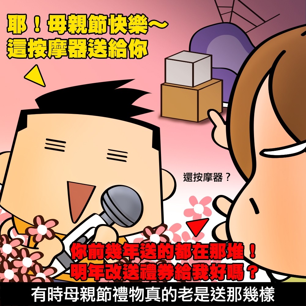有的時候送媽媽一些禮物不見得她會喜歡用,而且每次送可能多半都是那幾樣,所以包紅包或送禮券給媽媽去發揮是最棒的啦!