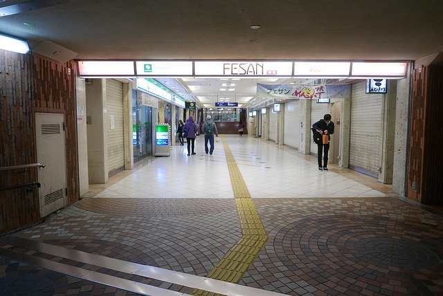 這條地下道直通盛岡車站旁的購物中心「FESAN」,看到這個亮晶晶的出口就對了,直接走上去可以購物也可以搭車。