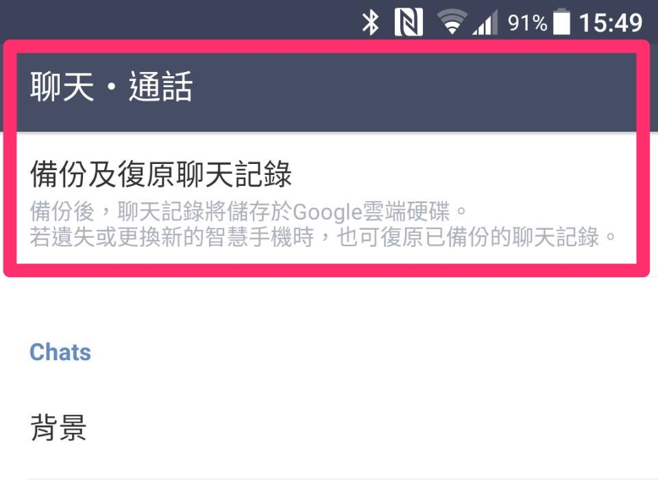 不過要注意的是,聊天記錄備份的部分必須先行綁定 Gooogle 帳號以及僅有開放文字訊息部分,因此若是有圖片或是檔案想要備份的朋友,還是建議先行下載唷!