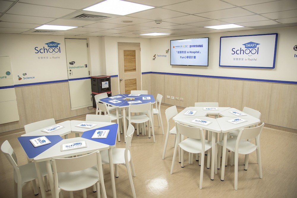 中國醫藥大學兒童醫院兒童癌症多專科團隊整合超過 24 個兒癌治療相關科部,兒童癌症治癒率高達八成。但隨著治癒率的提高,病童學習中斷的議題也逐漸浮現。為維護病童受教權利,中國醫藥大學兒童醫院與台中市教育局、衛生局和社會局合作,自 2013 年設立「醫院床邊教學巡迴輔導班」,內容包括學校主流課程、音樂與藝術,院方發現不僅幫助孩子學習,也能滿足人際互動的需求,出院後能更快適應學校生活。中國醫藥大學兒童醫院彭慶添院長說道:「住院的孩子最期望的就是痊癒然後回到學校上課,非常感謝此次三星提供豐富的科技產品,為床邊教學帶入更多資源,大幅提升床邊老師的教學效益和病童的學習意願」。台灣三星電子長期關注台灣兒童的教育和創新,積極拓展全球性「智慧教室」計畫,希望將受益範圍拓展到學校以外的場域。因先前曾運用產品幫助白血病童圓夢,讓台灣三星電子看見醫院病童的需求,因此今年積極於醫院中建置智慧教室 in Hospital,上半年度已完成高雄與台北佈點,此次前進中台灣,台灣三星電子企業解決方案事業部吳昇奇總經理表示:「很榮幸能夠與中國醫藥大學兒童醫院合作,與院方和台中市府教育局、衛生局、社會局共同推動醫院床邊教學,期待透過科技產品讓教學更有彈性,幫助床邊教師和病童教學更輕省,讓學習的樂趣陪伴孩子,帶來持續治療的動力」。
