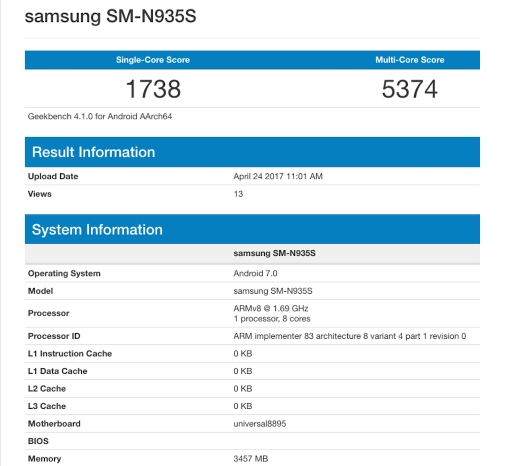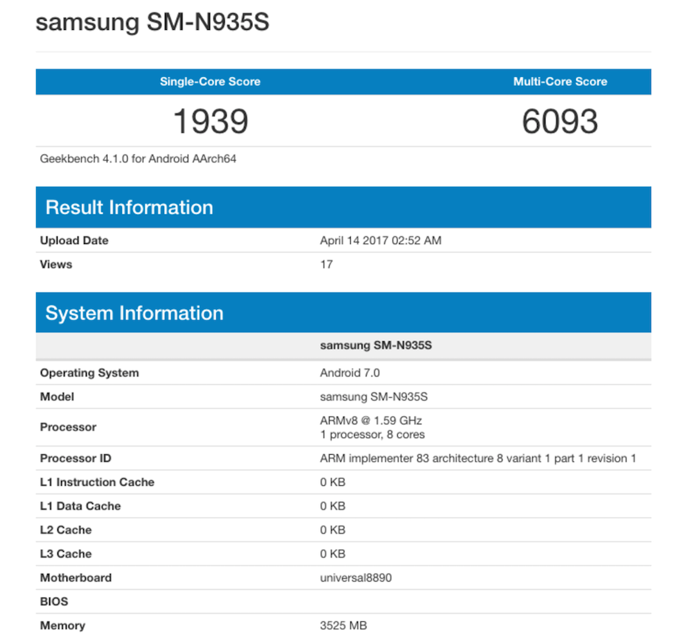 根據知名跑分網站 Geekbench 資料庫中的資料顯示,最近有兩款同為 SM-N935S 的測試品,跑分成績已經曝光,據了解,這兩款同為 SM-N935S 的測試品,皆為已經完成翻新且準備在韓國市場重新上市的 Galaxy Note 7R,單核成績 1738、多核成績 5374 的是 Samsung Exynos 8895 版本,而單核成績 1939、多核成績 6093 的則是 Samsung Exynos 8890 版本,兩個版本跑分成績有些許差距,但皆採用 Android 7.0 作業系統,推測功能方面並不會有任何差異。