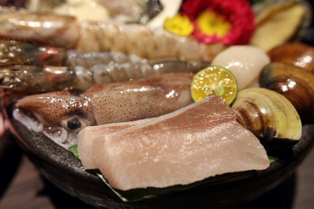 進入海鮮的部分囉!!!只要點豪華套餐,就會有看起來超厲害的海鮮拼盤,有法國吉拉多生蠔、青甘魚肚肉、明蝦、白蝦、蛤蠣、干貝、鮑魚,裡面有三種生食級的海鮮,分別是法國吉拉多生蠔、青甘魚肚肉與干貝,我只能說,升級豪華套餐真的超划算,是老饕的你們一定懂