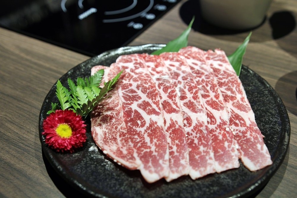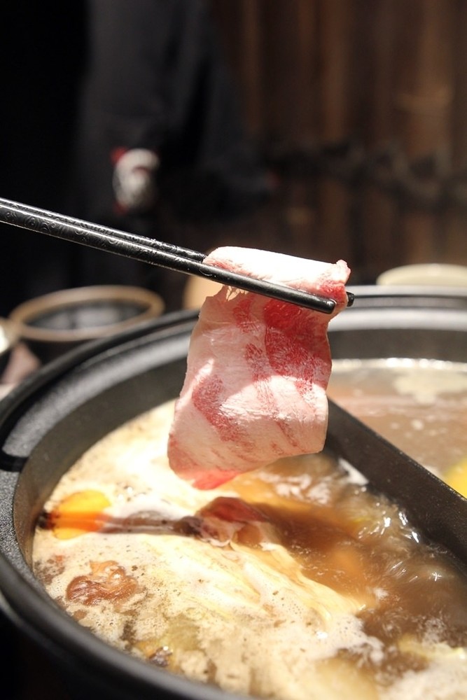 選用美國prime級的,大家應該比較熟悉和牛吧,而這款的等級勝過和牛,可想而知那鮮嫩的肉質,最吸引人的就是那厚度!!!很少在火鍋店可以看到如此厚度的牛肉吧