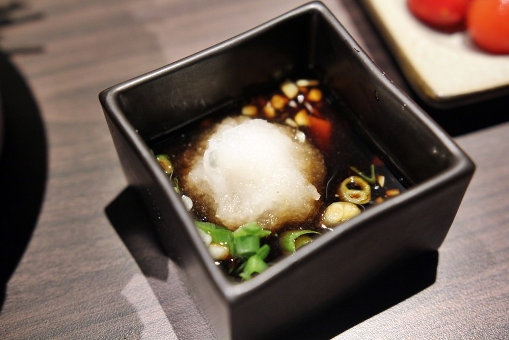 吃起來是偏日式,裡面有白蘿蔔泥跟蔥,微微的酸味,可以提食材的鮮度,我們覺得店家提供的醬汁並非所有人都會喜歡,這裡沒有提供過多的調味料,那些對身體都是負擔,且希望顧客可以品嘗到食材的新鮮原味,有些人還是喜歡沾沾沙茶醬、辣椒醬啊,其實可以試著換換口味,店家也表明,之後有打算自製胡麻醬,給顧客多一種搭配選擇