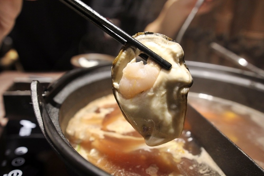 煮的時候不用連殼一起,師傅已經處理過,輕輕一拉起來就會發現殼肉相當好分離,生蠔的部分大約煮40秒,吃起來口感相當飽滿、鮮度十足