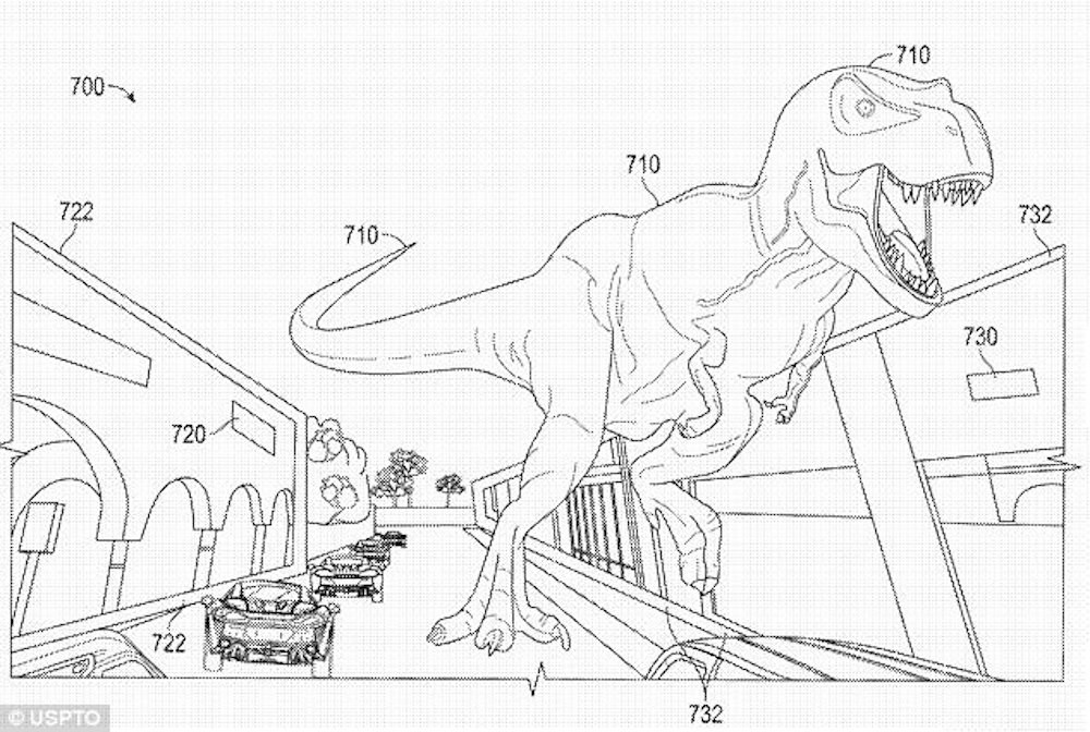 根據這份專利報告顯示,Snapchat 公司打算在自家的 Spectacles 太陽眼鏡的左右兩側支架中,導入可以提供用戶 AR 擴增實境功能的控制器,以及在鏡片上加裝能顯示 AR 擴增實境的裝置,當位於兩側支架中的控制器被啟動後,就會主動偵測與重構周邊場景與追縱動態物體,並將虛擬畫面與實際場景結合,達到 AR 擴增實境的顯示效果,就算要模擬恐龍出現在大街上,也不成問題。