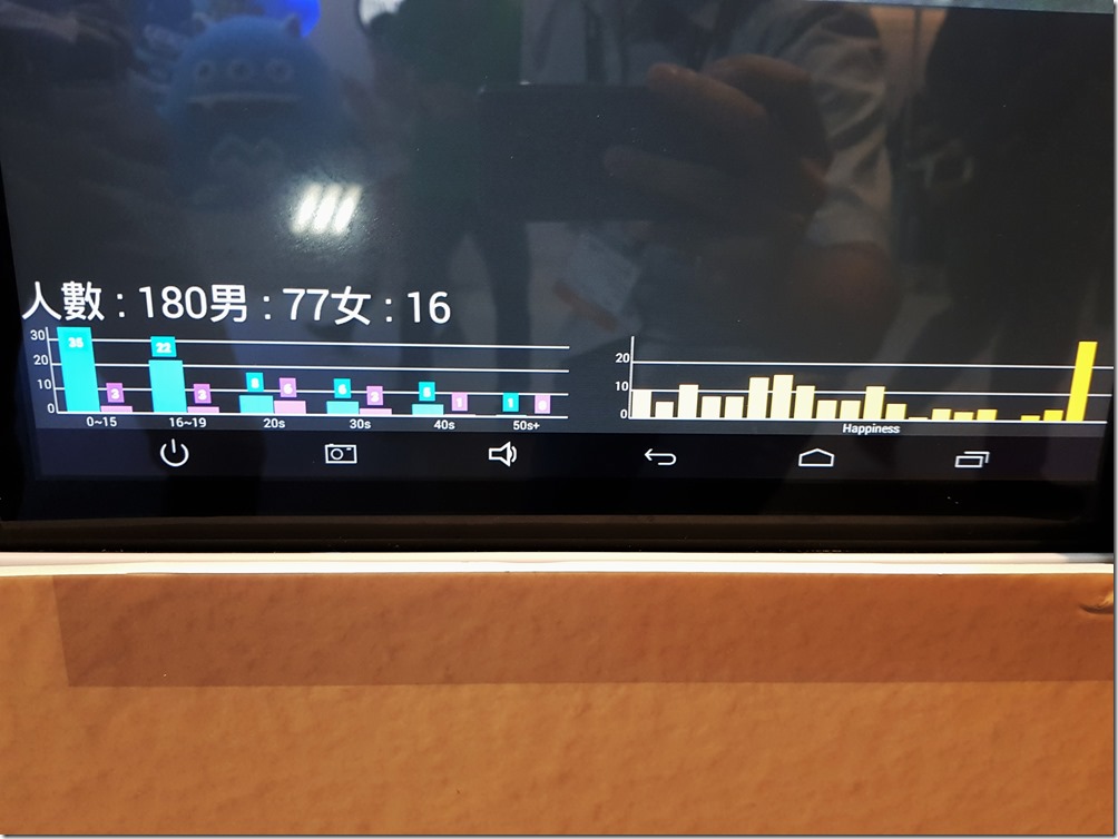 yuTOUCH 這次所展示的智慧互動廣告機,並不用你直接購入一台大型顯示器,只要使用你原有的廣告看板顯示器,並搭配 yuTOUCH 主機與鏡頭,就可開始使用。當有人經過你的看板或是停留觀看時,就會進行統計與分析。分析方式是利用人臉辨識系統,來判別姓別、年齡…等資料。