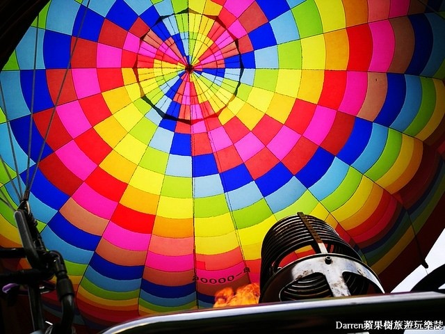 之前在台東就搭乘過熱氣球,這次搭乘同樣非常嗨森,噴火器噴火讓熱空氣上升,熱氣球就緩緩升空