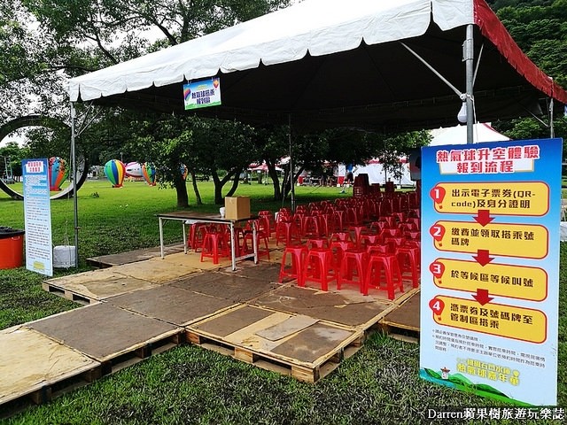熱氣球升空體驗報到區,如果沒有在網路上預約到的朋友,可以早點來現場排碰碰運氣有可能搭配到熱氣球唷