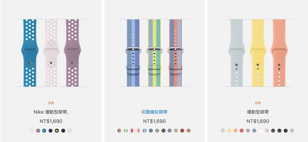 再來同樣是 Apple Watch 錶帶部分,不管是運動型錶帶、Nike 款錶帶都紛紛推出多種新色,就連皮革款式也有向日葵黃新色選擇。