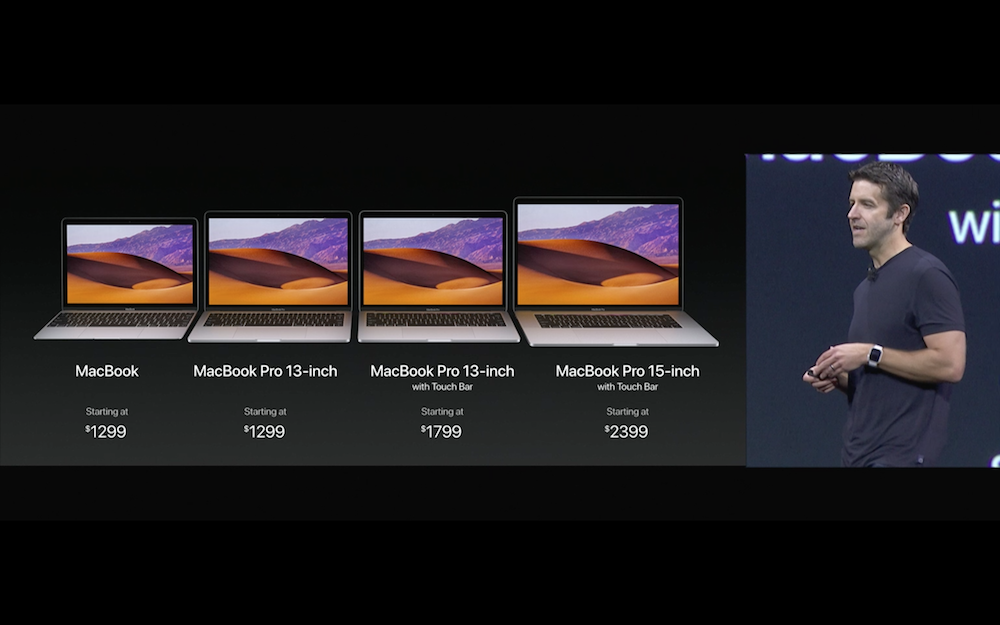 WWDC17 中不僅推出了 iMac、iMac Pro 等產品,MacBook 系列筆電也有小幅度升級。首先,MacBook 與 MacBook Pro 將採用 Kaby Lake 處理器,MacBook 將獲得更快的 SSD 升級,蘋果也沒忘記 MacBook Air,將會給予 MacBook Air 更快的處理速度。此外,蘋果也趁著 WWDC17調整了 MacBook  Pro 13 吋的售價,根據台灣蘋果官網的售價表來看,處理速度提升後的 MacBook Air 售價將從 31,900 元起,MacBook Pro 13 吋一般版售價則是從 41,900 元起,具備 Touch Bar 的 13 吋 MacBook Pro 售價為 57,900 元起,至於具備 Touch Bar 的 15 吋 MacBook Pro,售價則是 77,900 元起。