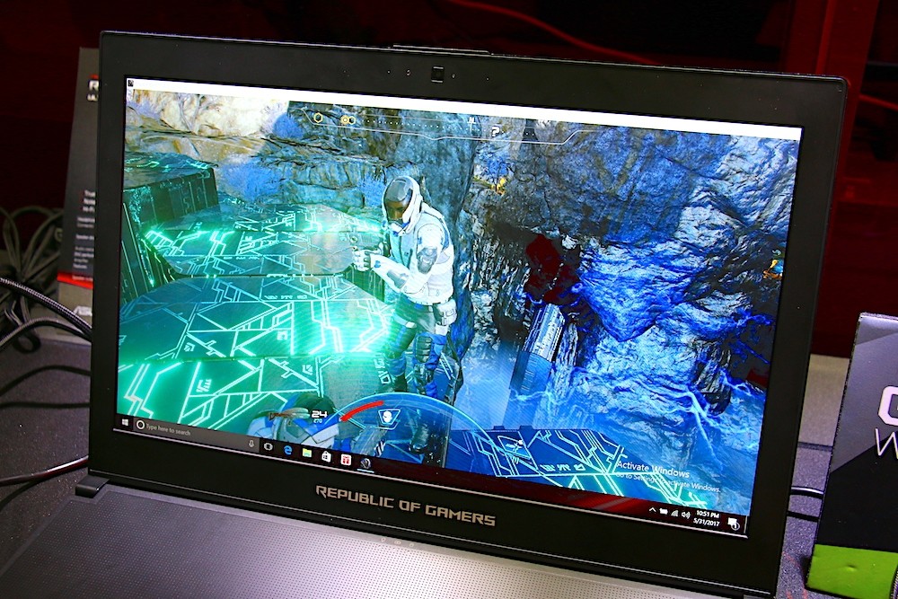 ROG Zephyrus 是一款採用 NVIDIA 的 GeForce GTX Max-Q 技術的電競筆電,搭配 Intel Core i7 處理器與 NVIDIA GeForce GTX 1080 顯示卡,從現場開放體驗的射擊遊戲畫面中感受到,就算遊戲正在激烈對戰,ROG Zephyrus 也不會有任何延遲的狀況發生。此外,為了讓玩家更容易攜帶,ASUS 硬是將具備 Max-Q 技術的 ROG Zephyrus 的機身厚度壓縮到 16.9mm,也讓 ROG Zephyrus 成為少數配有 GTX 1080 顯卡但又非常輕薄的電競筆電。