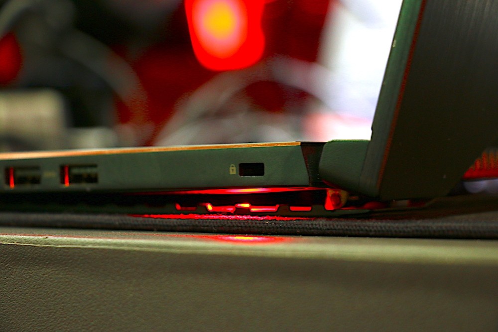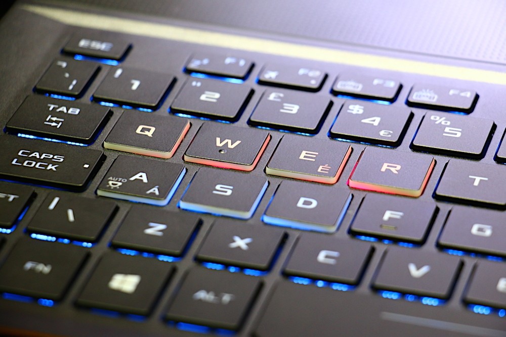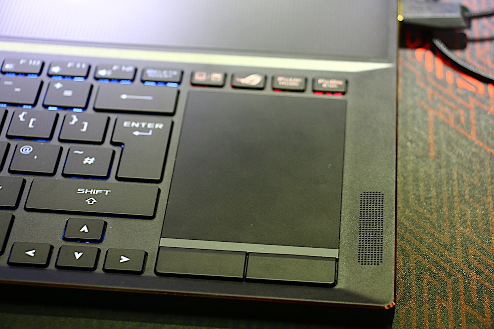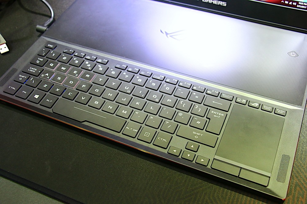 有別於 ASUS 其他電競筆電,ASUS 將 ROG Zephyrus 的鍵盤調整到機身 B 件的前端位置,這樣的設計除了能讓鍵盤更接近玩家之外,另一個好處就是玩家使用鍵盤時可以更加輕鬆,尤其是玩需要使用較多按鍵來控制角色的射擊遊戲最有感覺,再也不用受到手托摩擦干擾,而影響左手操作其他按鍵的速度。
