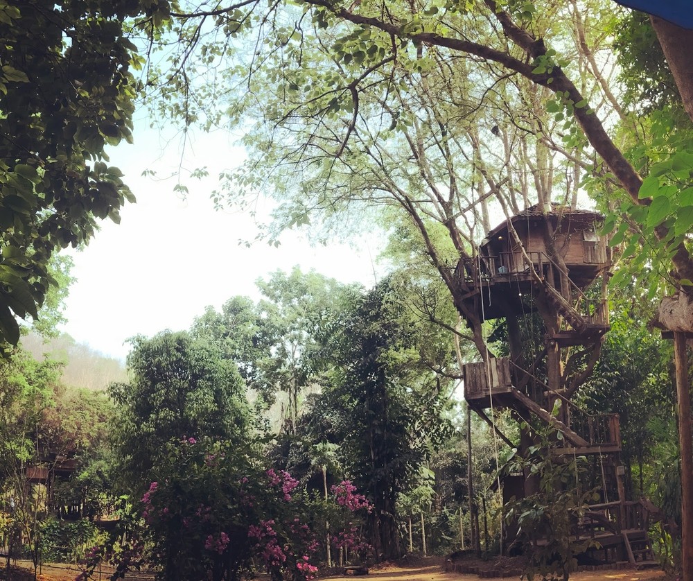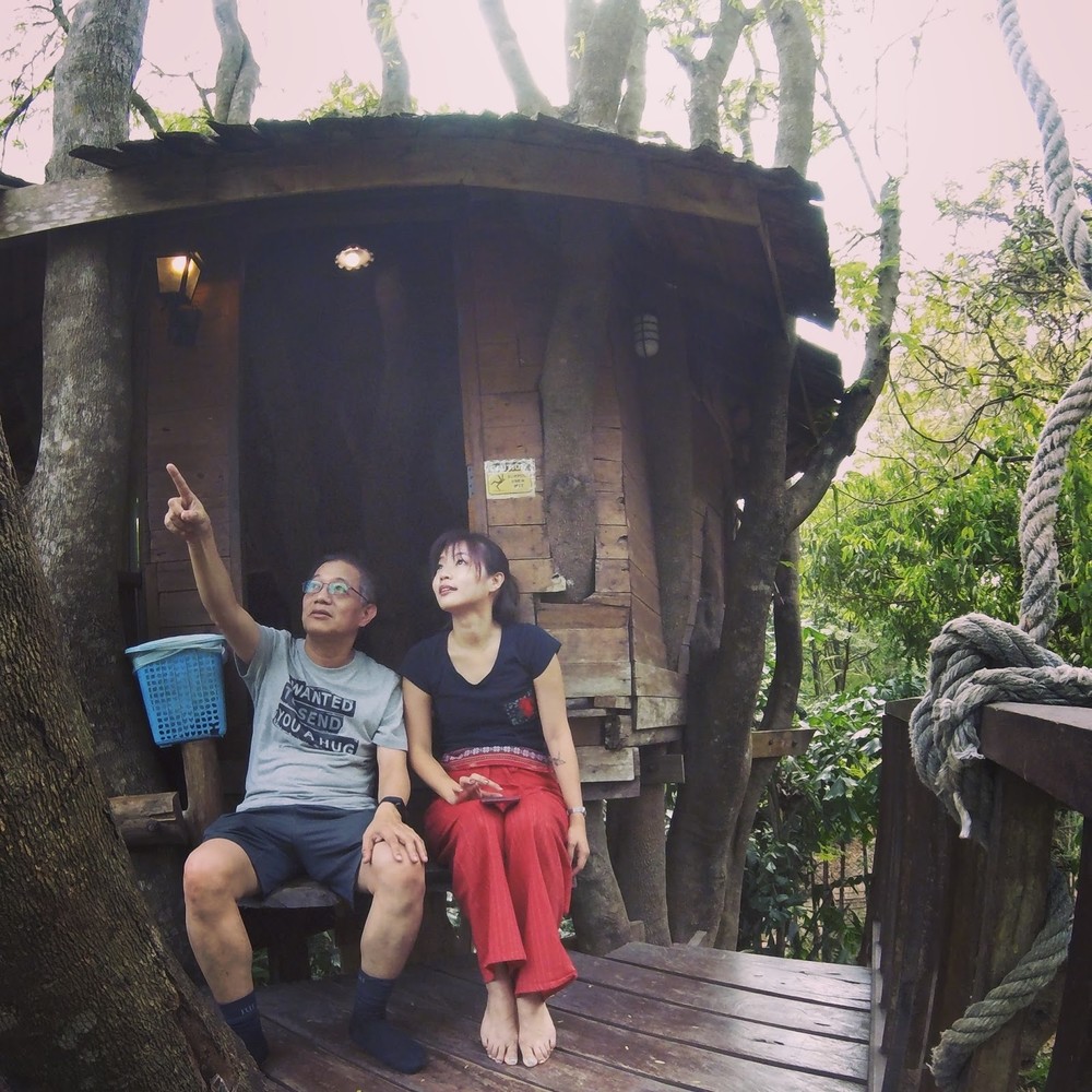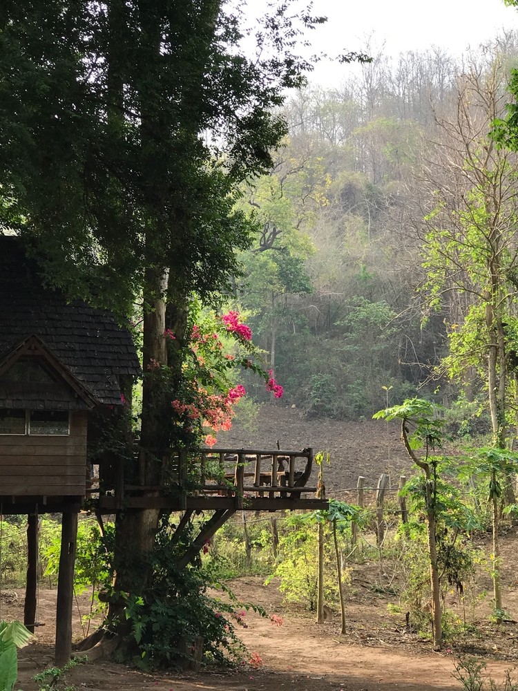 座落在清邁古城北方大約90分鐘車程外的山裡,當司機把車駛進蜿蜒的2線道蜿蜒山路,窗外張牙舞爪的熱氣慢慢冷靜下來。我稍微鬆了口氣,因為樹屋沒有冷氣,而四月大概是泰國最熱的月份,三天兩頭就豪邁地用攝氏40度來展現熱情。
