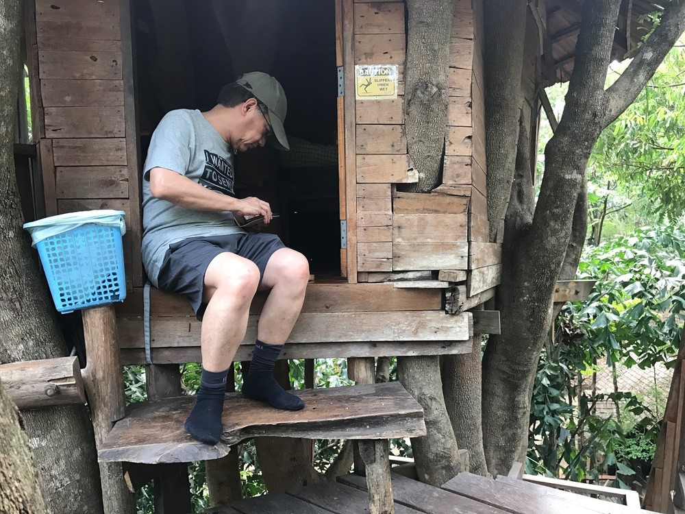 Mr.Lee是一個七十幾歲的爺爺,退休後在這裡買了一塊地開始蓋他的樹屋。他的女兒與女婿也一起經營,英文讀寫能力較好的女婿Mink負責在網路上與旅客書信往返。至於庶務性的房務餐飲以及建築工人,大多是附近村民不諳英文。