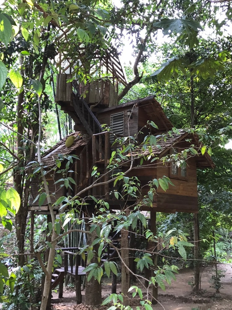下午三點我們準時抵達了樹屋,正式名稱則是Rabeang Palak Treehouse resort。這是一個家庭經營的迷你度假村,老闆(Mr.Lee)是一位退休的建築師,也是這些樹屋的建造者,他在櫃檯等著我們。