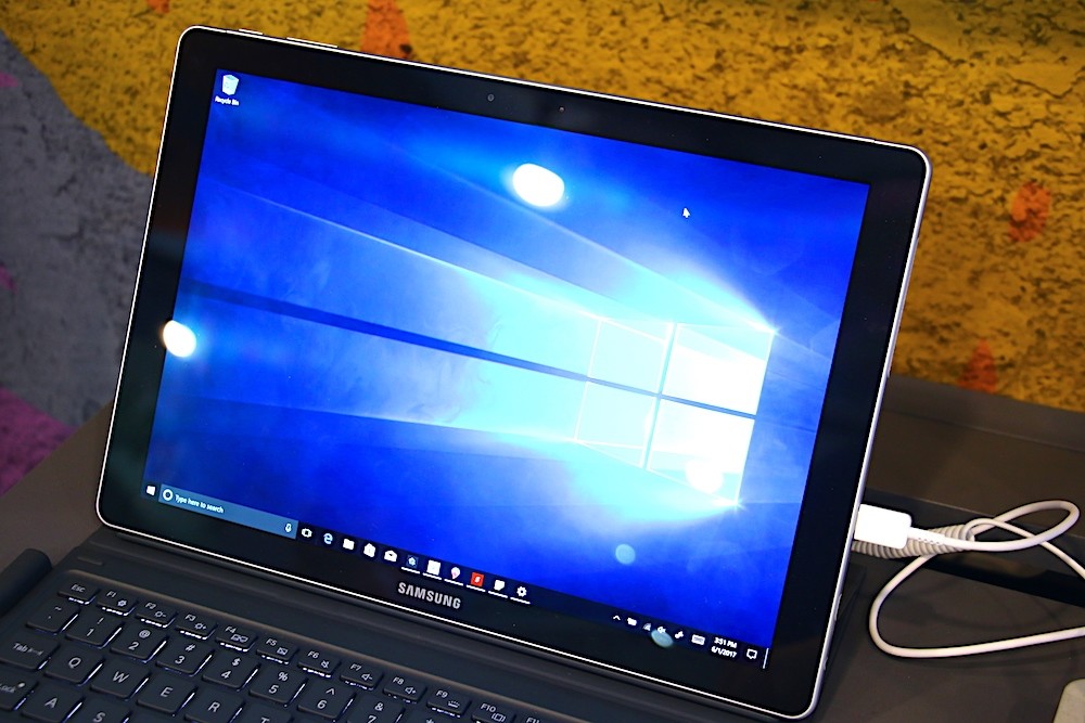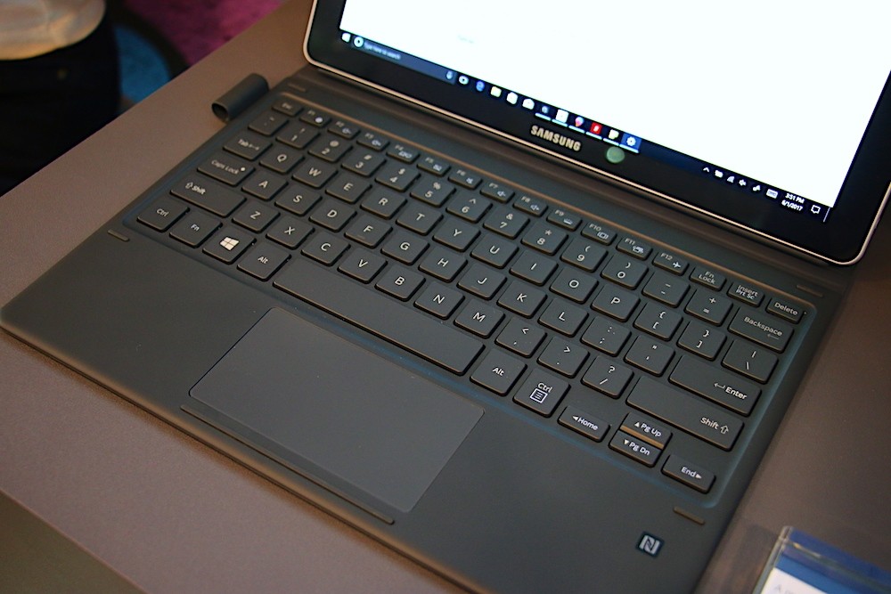 於 MWC 2017 發表亮相且搭載 Windows 10 作業系統以及支援 S Pen 的 2 in 1 筆電 Samsung Book 12,悄悄現身在 COMPUTEX 2017 的微軟攤位中,現場展示的版本為 12 吋高階版本,可以搭配底下的鍵盤與支架合一的保護套以及旁邊的 S Pen 一起使用,讓用戶可以依照個人喜好或是使用需求隨機調整操作方式。