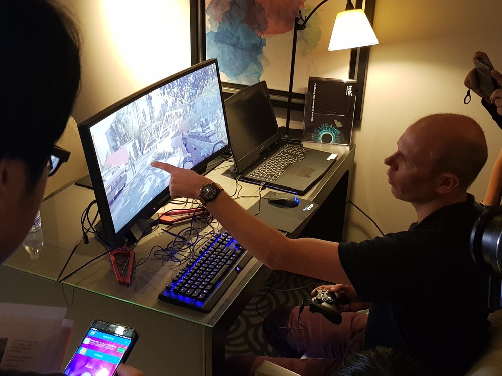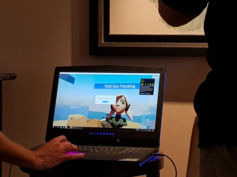 簡單說就是透過 Vive 頭戴式裝置中的晶片和相機,藉由追蹤眼球的感應來進行。當我們在射擊遊戲畫面上看到一架飛機飛過去,這時當我們看到,也就是我們已經瞄準,因此我們要考量的只有武器的攻擊時間點和力道選擇,也讓遊戲的進行更為流暢與直覺。