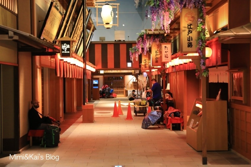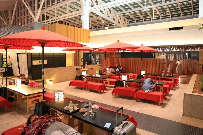 這層樓是羽田機場裡美食街的區域,但大約10點之後店家陸續休息,店外的椅子就成了大家休息的地方,而且燈光還充滿日式氣氛,因為座位不多所以也不會太吵鬧,如果以想好好睡覺來說,我覺得這層樓是最好的地點了,我們這次也是在這裡找位置,夯不啷噹也睡了快3小時。