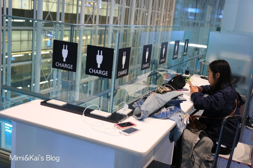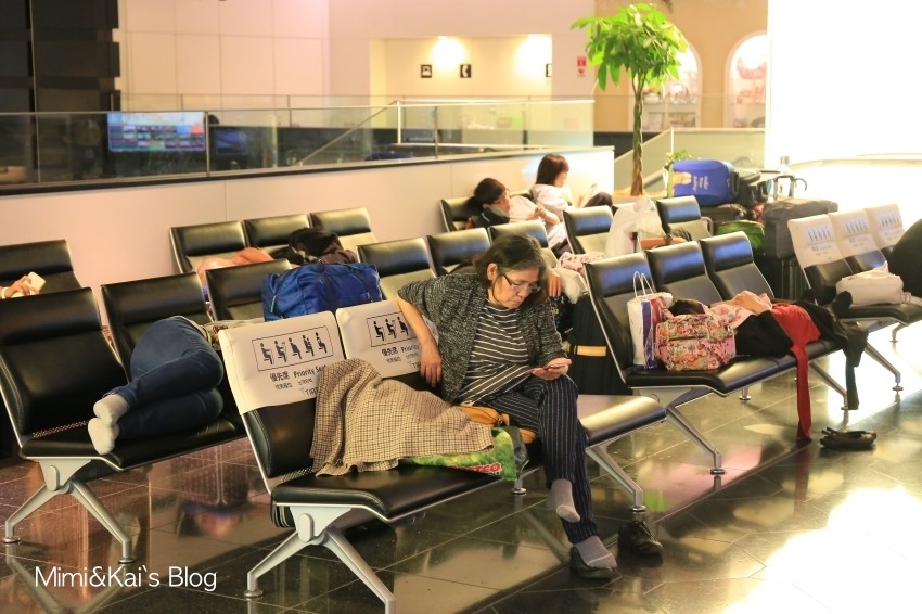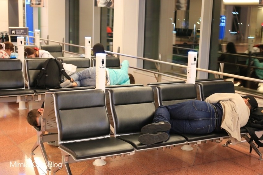 這層樓也是滿多人推薦可以睡覺的地方,但其實位置不多,大片玻璃前早早就被佔光光,睡不著還可以看飛機起降,另外和四樓一樣沒有充電裝置。半夜上來看還是有好幾組旅人在這裡休息,夜景也是滿美的吼~