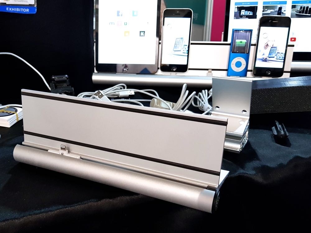 當家中行動裝置越來越多,一支我的手機、一支媽媽的手機、一支爸爸的平板、一支我自己的平板之類的,那麼充電區是不是總是一堆線材亂紛紛?! 今年的 COMPUTEX 中就看到了頗有名氣的多合一充電架 udoq 出現其中!