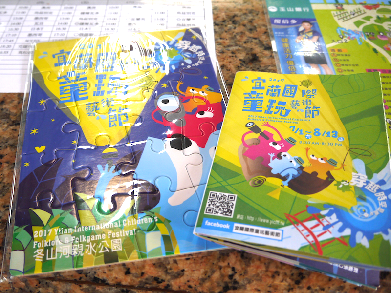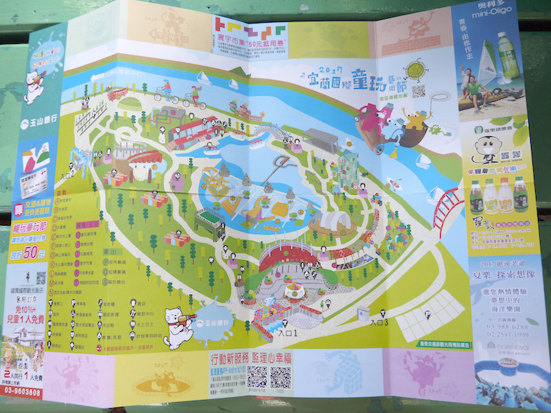 大家可以在售票處或園區內索取紙本地圖,上面 2017年宜蘭國際童玩藝術節 購票、交通等資訊外,還有折價抵用券。