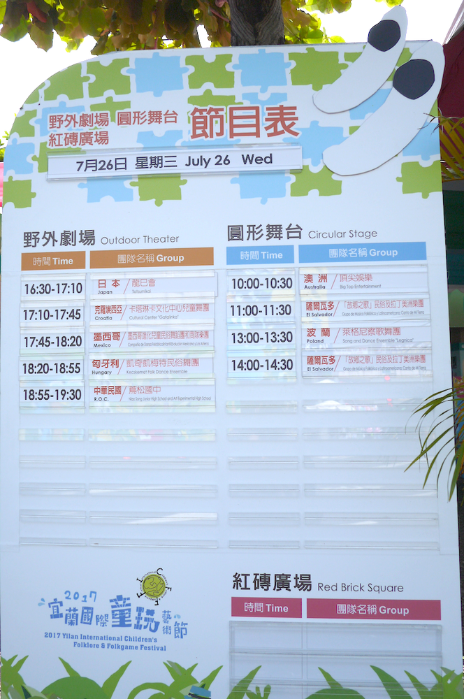 每日在大門口處也會有告示牌清楚列出表演時間與團體名稱。