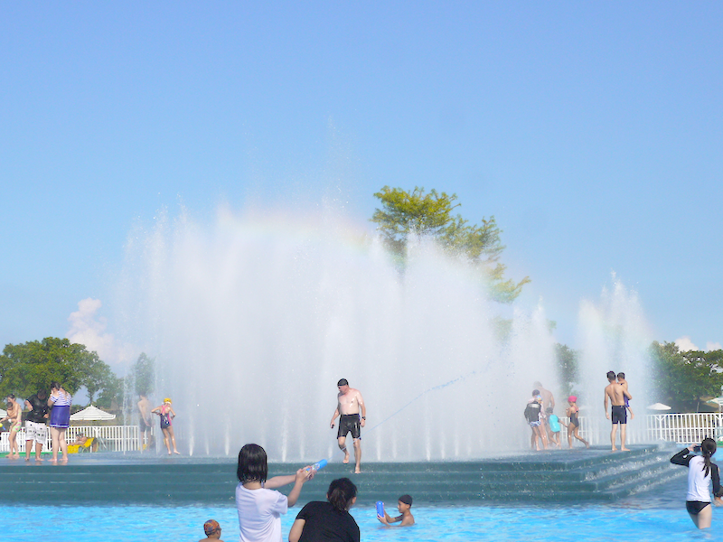 當水霧噴起,伴隨搖滾的音樂,令人血液沸騰,雖說是水霧迷宮,但當下覺得說是在Dancing Pub會更貼切,陽光照耀連彩虹都來湊熱鬧,更顯如夢似幻。