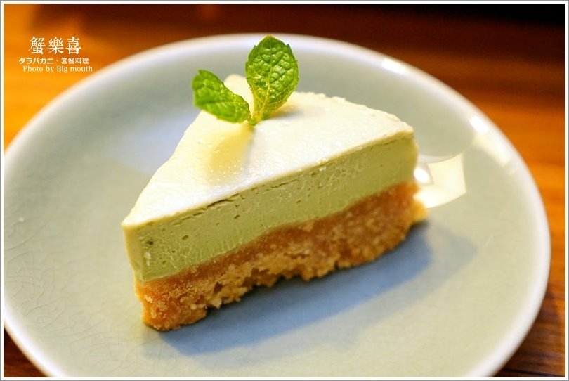 ▼甜點是抹茶起司蛋糕,吃進嘴裡不僅淡雅芳香,搭配香濃的起司香氣與酥脆的餅皮,清新爽口又不過甜膩,是個很好的Ending!
