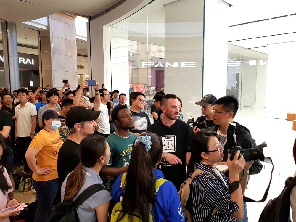 好不容易等到開門,所有果粉們便在熱情員工的夾道歡呼下魚貫進場。