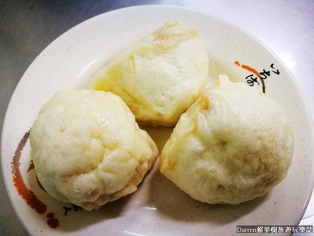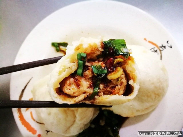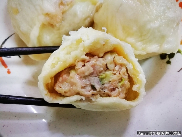 肉包裡頭是搭配些許蔥花的豬肉餡,外皮嚼起來有香氣,豬肉餡帶有肉汁鮮香,包子個頭不大每次我都吃3顆