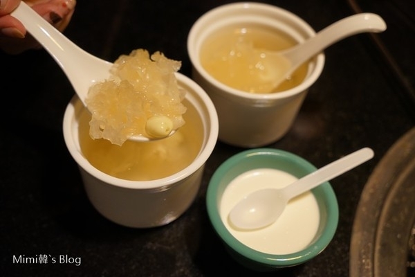最後我們加點了飯後甜點,竟然有冰糖銀耳蓮子湯可以選,太妙了,而且冰冰涼涼好好喝。另外還有奶酪、一口酥乳酪,幫這頓燒肉吃到飽大餐做個甜甜的結尾。
